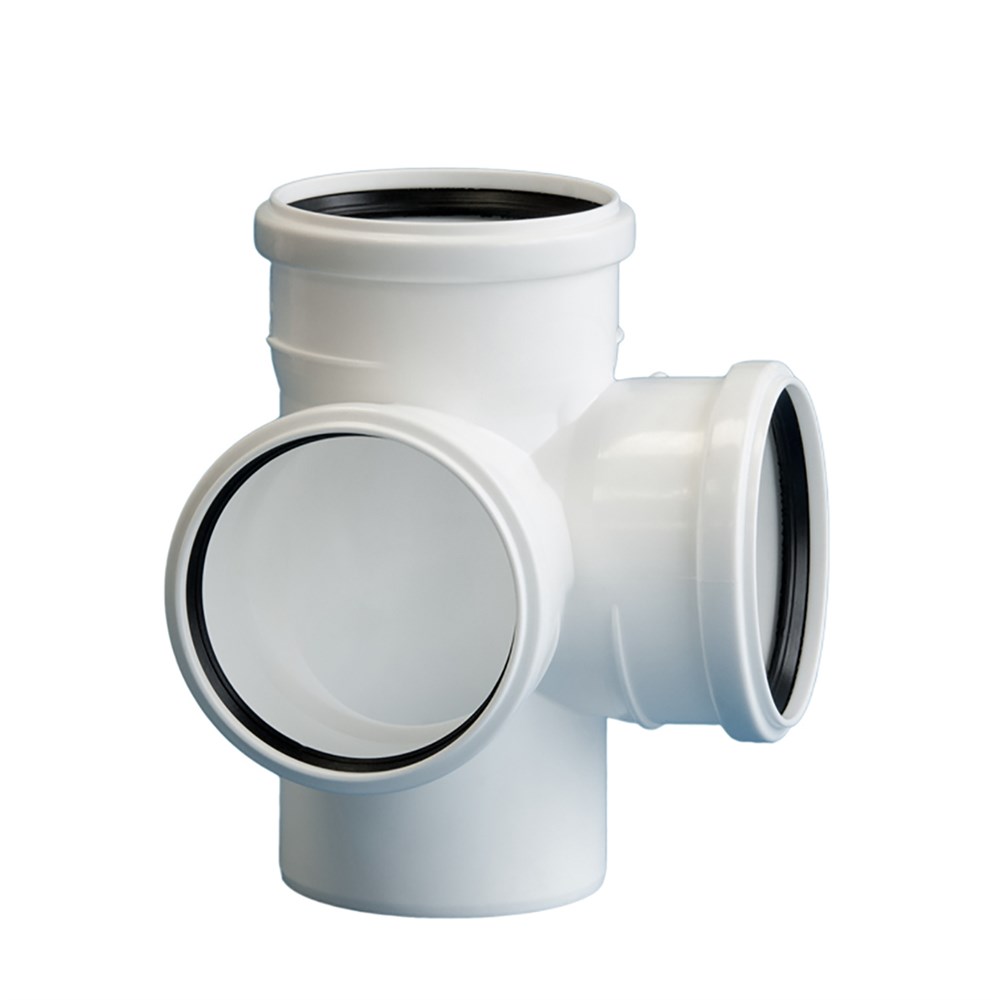 Крестовина белая в канализационных системах с улучшенным шумопоглощением предназначена для подключения к трубопроводу до 2-х дополнительных ответвлений в одной (одноплоскостная) или в двух плоскостях (двухплоскостная).