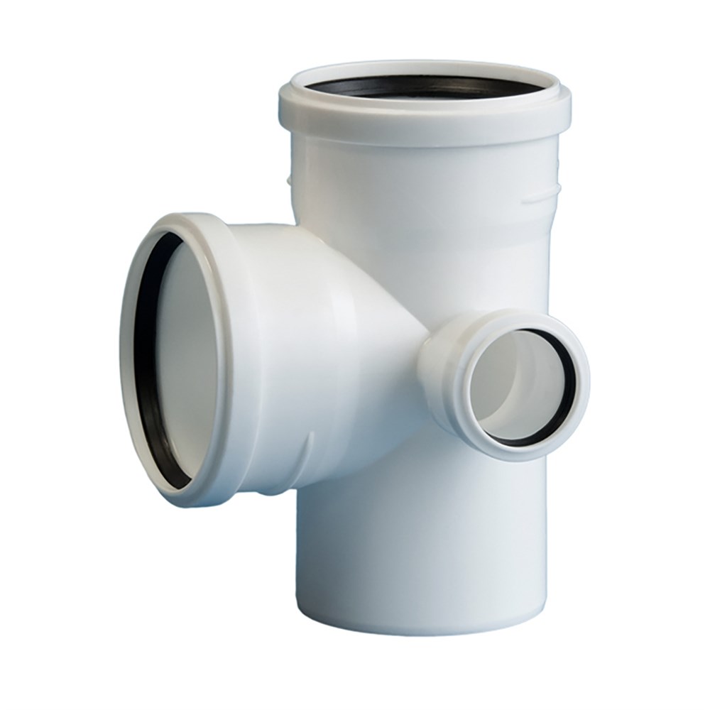 Крестовина белая в канализационных системах с улучшенным шумопоглощением предназначена для подключения к трубопроводу до 2-х дополнительных ответвлений в одной (одноплоскостная) или в двух плоскостях (двухплоскостная).