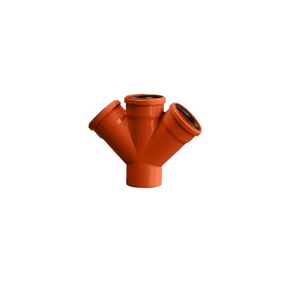 Крестовина для наружной канализации предназначена для подключения к основному трубопроводу дополнительных ответвлений в одной плоскости.
