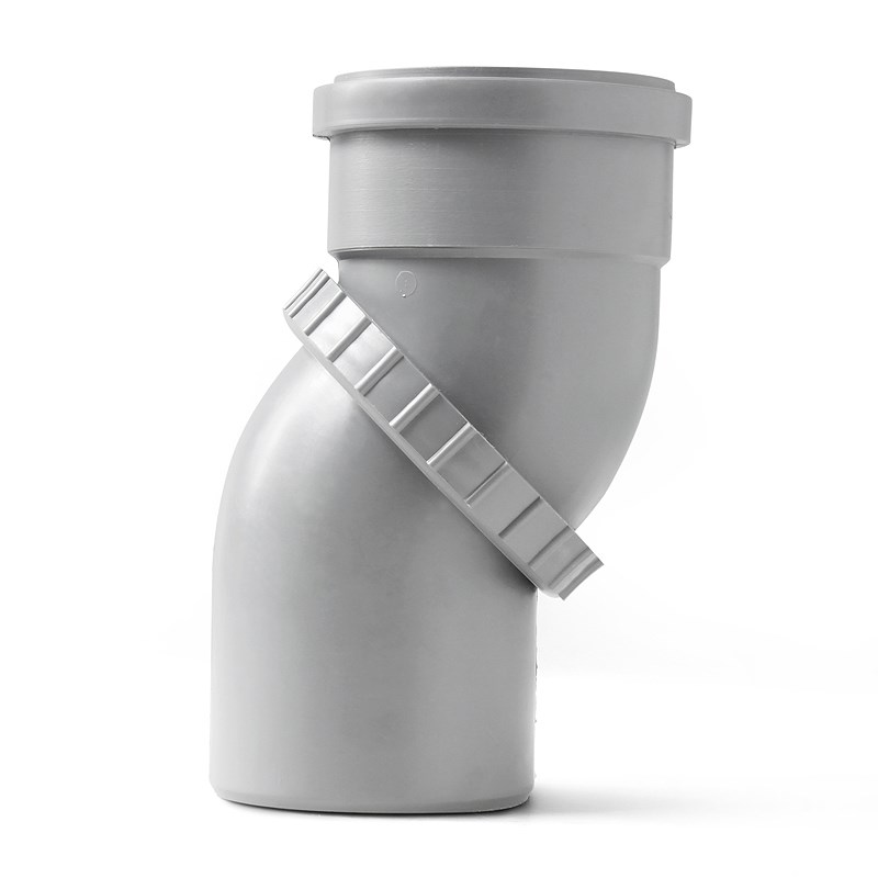 Отвод универсальный D110 мм применяется в случае, когда необходим нестандартный угол наклона трубопровода, либо когда нет возможности определить наклон для отведения стояка.