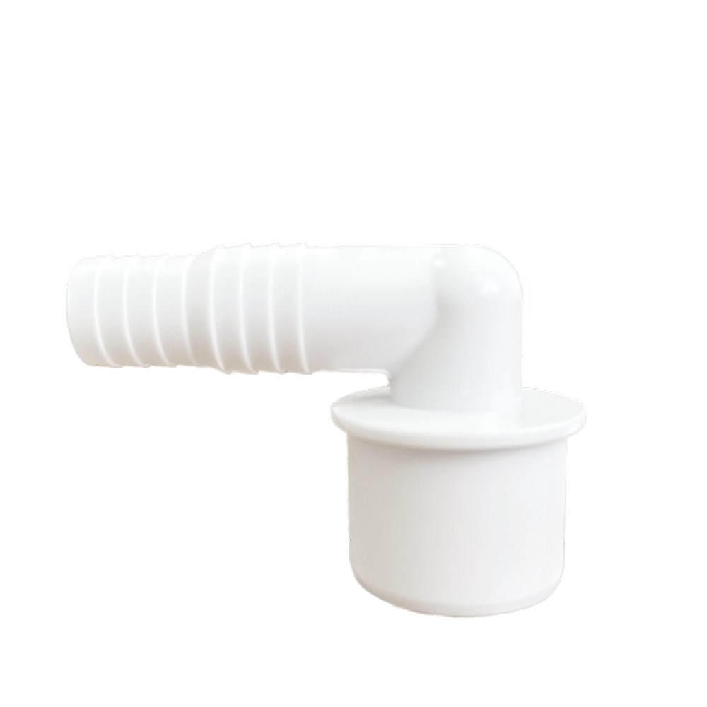 Переходник (угол 90°) для подключения сливного шланга стиральной или посудомоечной машины. Помогает присоединить сливной шланг к фитингу внутренней канализации, что обеспечивает слив воды из бытовой техники.
