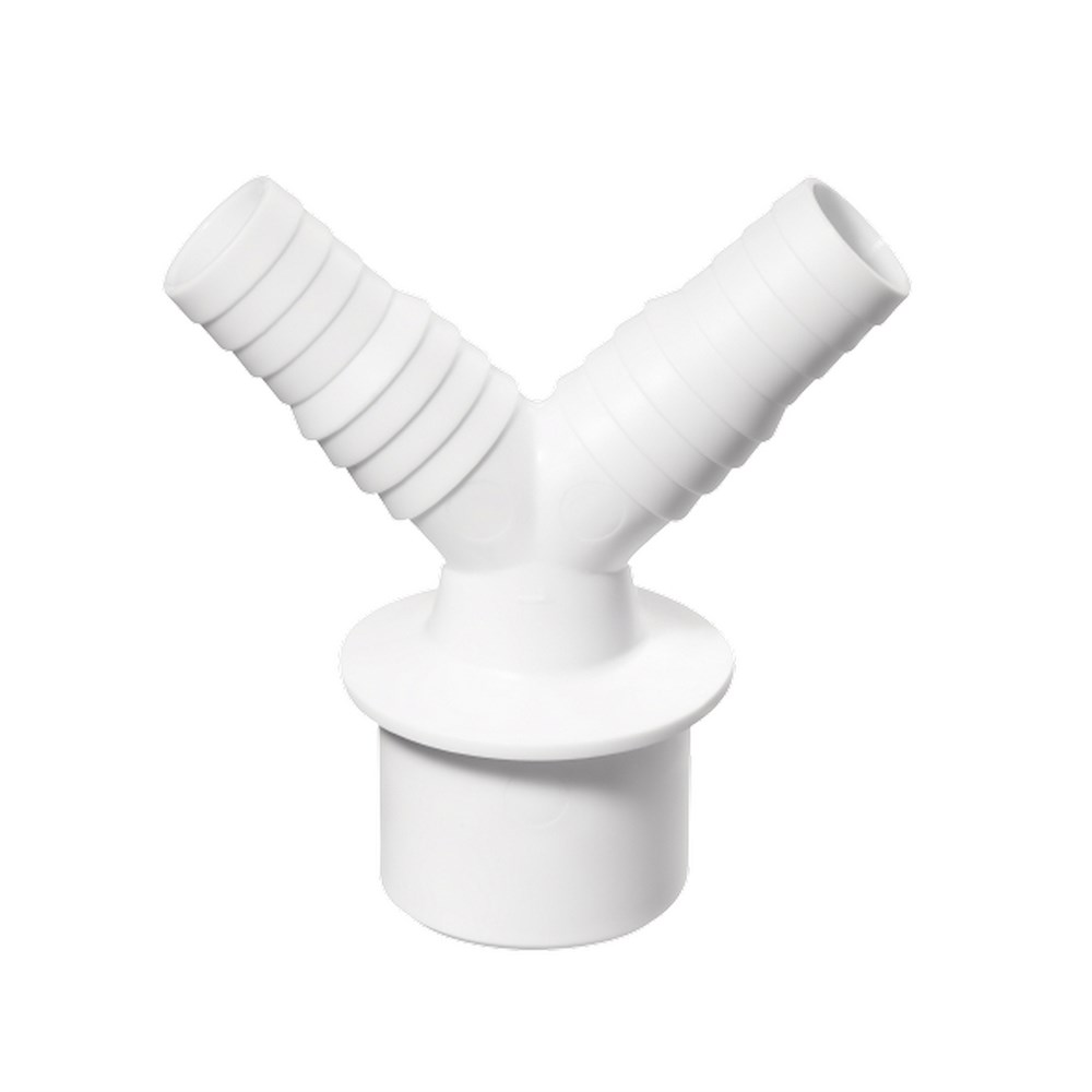 Переходник для подключения сливного шланга стиральной или посудомоечной машины. Помогает присоединить сливной шланг к фитингу внутренней канализации, что обеспечивает слив воды из бытовой техники.
