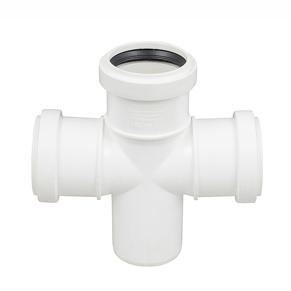 Крестовина белая в канализационных системах с улучшенным шумопоглощением предназначена для подключения к трубопроводу до 2-х дополнительных ответвлений в одной (одноплоскостная) или в двух плоскостях (двухплоскостная).