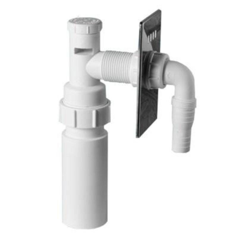 Адаптер для слива бытовой техники с вентиляционным клапаном и декоративной хромированной решёткой; в