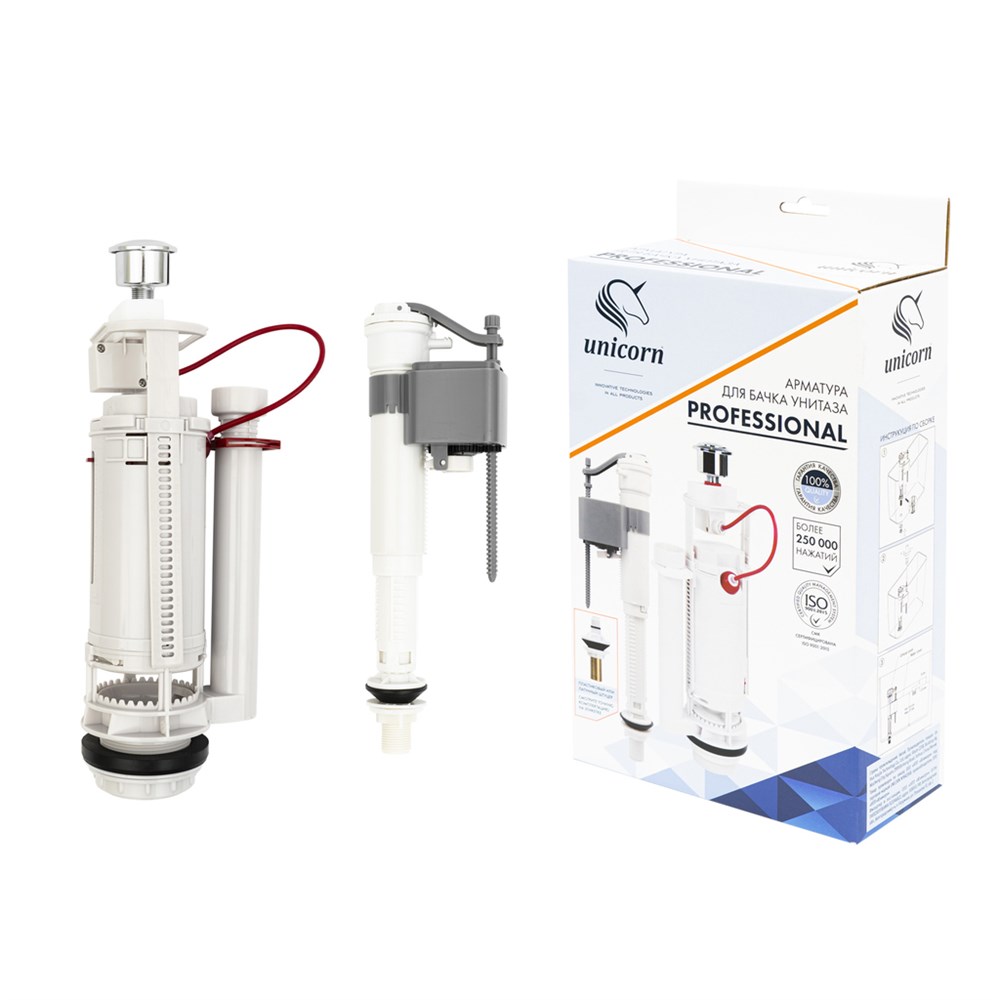Арматура подходит как для отечественных, так и для импортных моделей бачков унитаза. Арматура регулируется под любую высоту и под любой объем бачка унитаза. Имеет низкую чувствительность к перепадам давления воды. Тихое и быстрое наполнение водой..