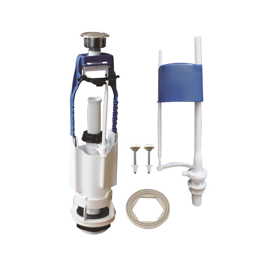 Комплекты арматуры с кнопочным одноуровневым/двухуровневым клапаном выпуска предназначены для использования с керамическими бачками, отверстие в крышке которых имеет примерный диаметр 40 мм. Комплекты с двухуровневым клапаном обеспечивают экономное расходование воды.