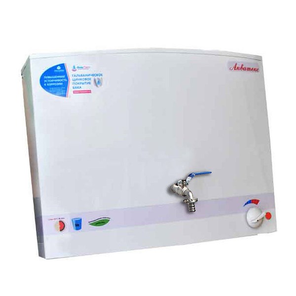 Внутри бак покрыт гальваническим цинковым покрытием, имеющим повышенную устойчивость к коррозии. Корпус состоит из стальной емкости, куда вмонтирован трубчатый нагреватель, датчик аварийного отключения ТЭНа. На лицевой стороне водонагревателя находится кран для слива воды и ручка терморегулятора для установки необходимой температуры воды. Имеется провод для подключения к однофазной сети с евровилкой. Бак имеет пробку для слива воды.