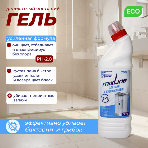 Чистящее средство Mixline для ванн и душ.кабин 750г ГЕЛЬ