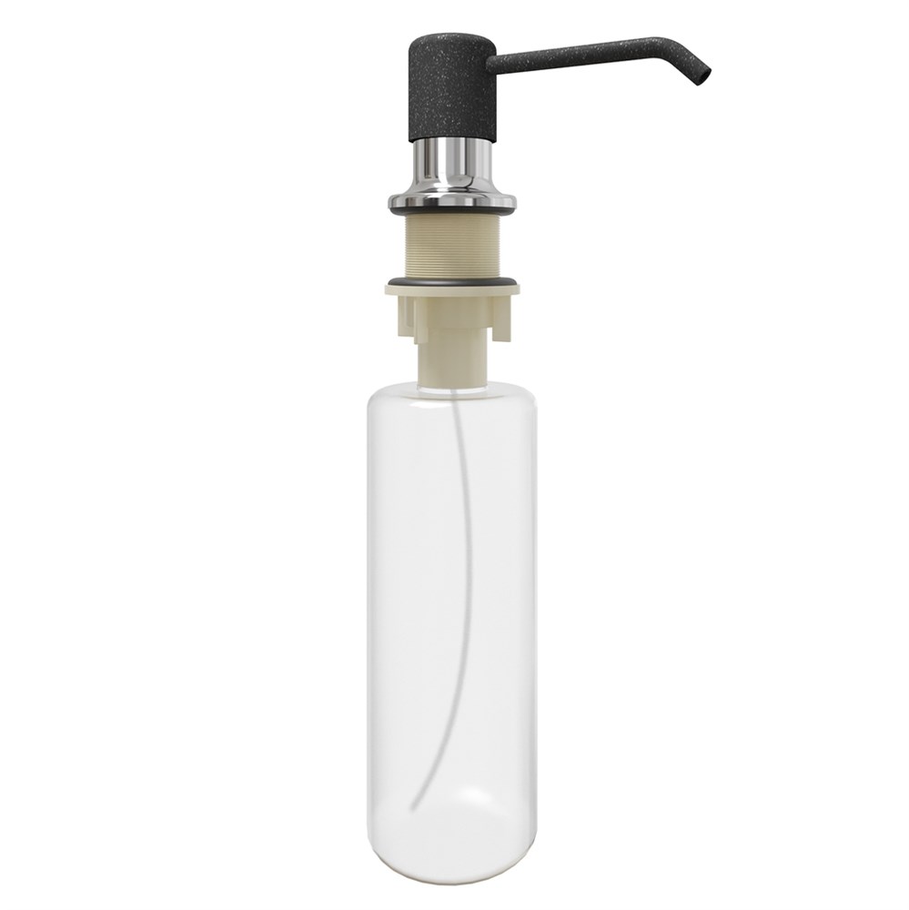 Врезной дозатор для жидкого мыла встраивается в мойку или в столешницу возле нее. Емкость со средством скрыта под поверхностью, сверху остается лишь носик устройства. Дозатор можно заправить не только мылом, но и гелем для мытья посуды.
