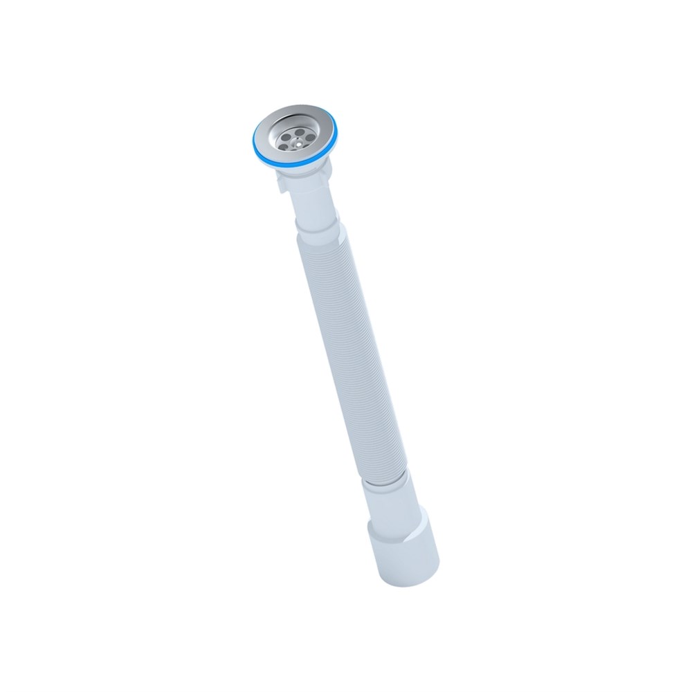 Комплектация: разборный выпуск для умывальников 1 1/4", сифон гофрированный удлиненный, скоба для создания формы гидрозатвора, упаковка.