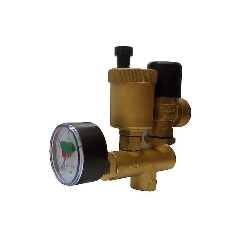 Группа безопасности котла 1" ВР: манометр, пред. клапан, авт.воздухоотводчик