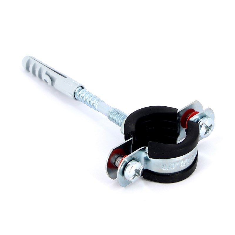 Хомут 3/4" (25-29 мм) с резиновым уплотнителем, шпилькой и дюбелем
