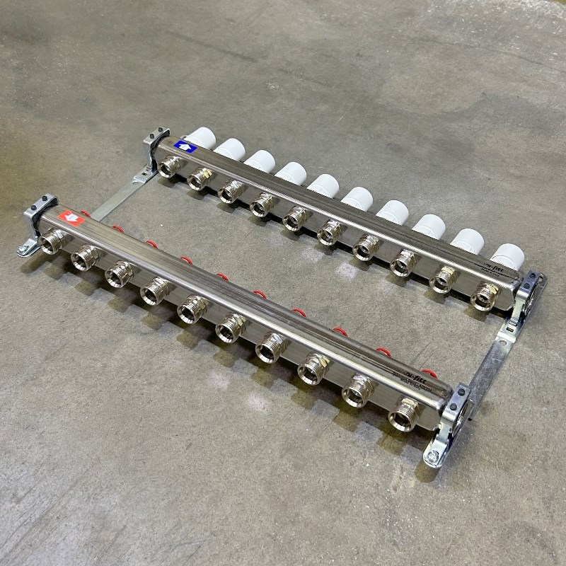 Колл.группа 1" х 10 вых 3/4" с балансировочными и термостатическими вентилями без конц, нерж. cталь