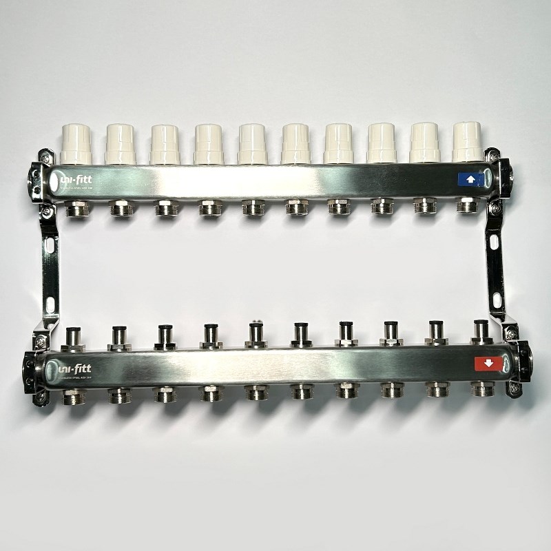 Колл.группа 1" х 10 вых 3/4" с балансировочными и термостатическими вентилями без конц, нерж. cталь