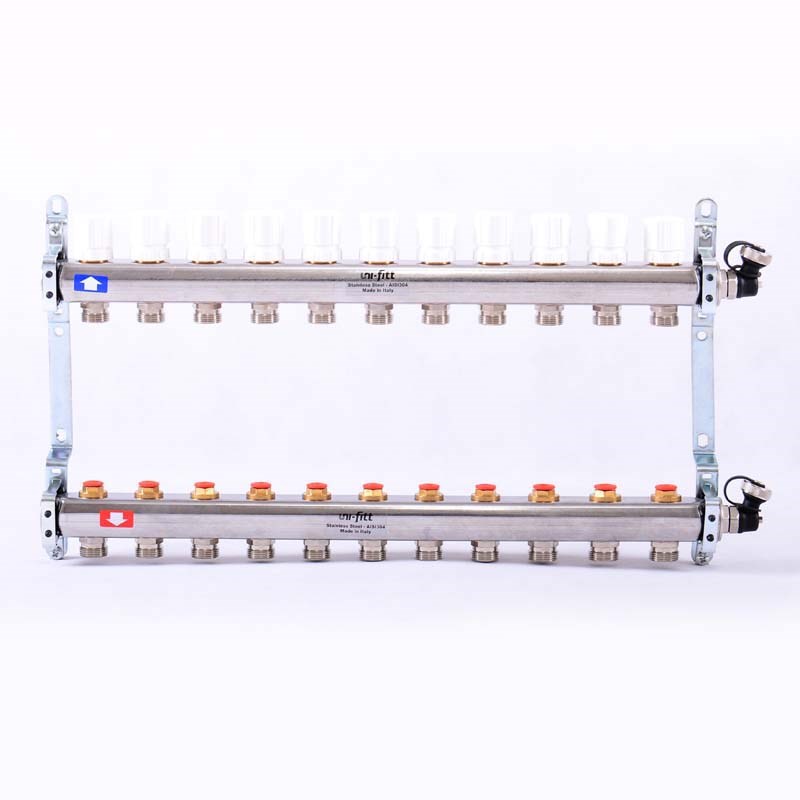 Колл.группа 1" х 11 вых 3/4" с балансировочными и термостатическими вентилями, нерж. сталь