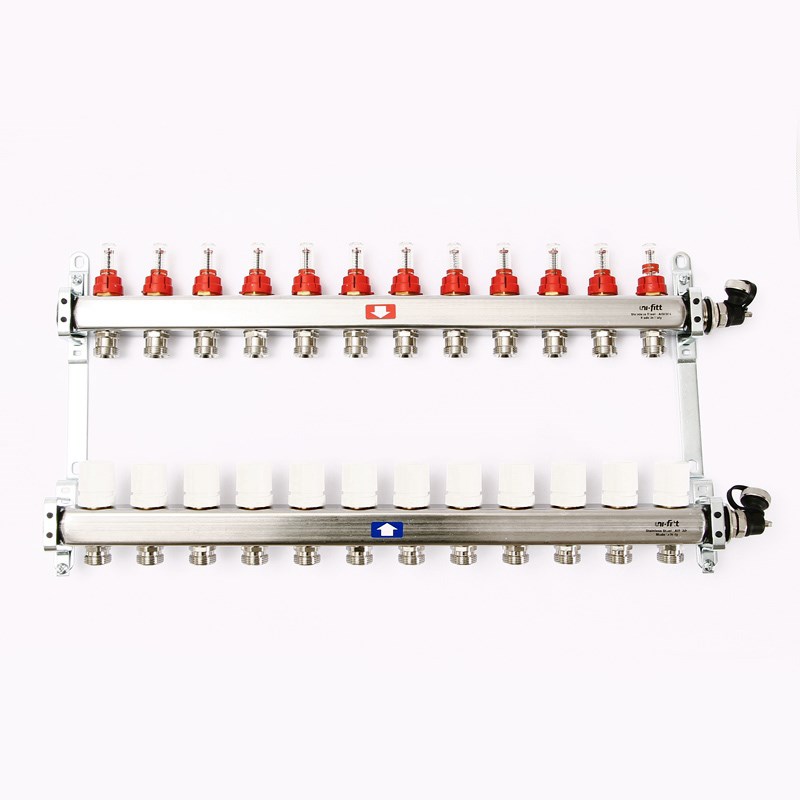 Колл.группа 1" х 12 вых 3/4" с расходомерами и термостатическими вентилями, нерж. сталь