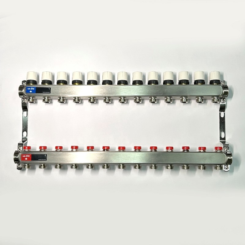 Колл.группа 1" х 13 вых 3/4" с балансировочными и термостатическими вентилями без конц, нерж. cталь