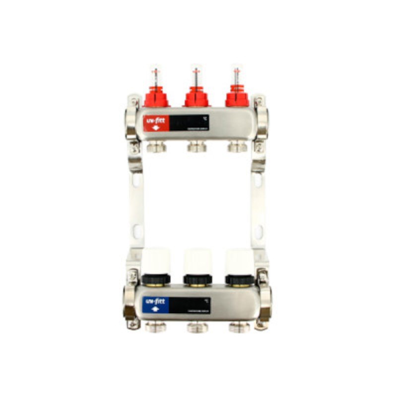 Колл.группа 1" х 13 вых 3/4" с расходомерами и термостатическими вентилями без конц, нерж. сталь