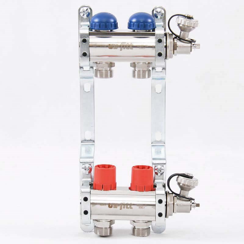 Колл.группа 1" х 2 вых 3/4" с расходомерами и термостатическими вентилями, нерж. сталь