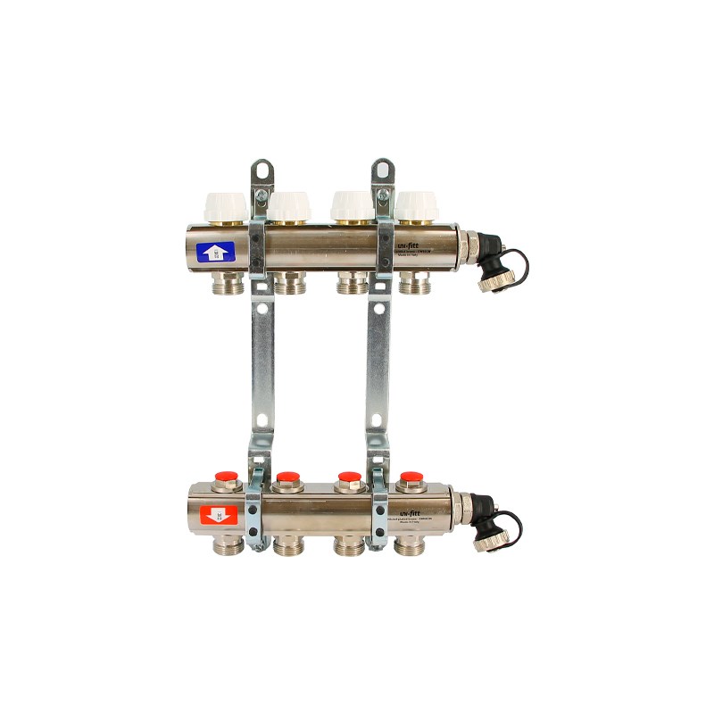 Колл.группа 1" х 2 вых 3/4" с расходомерами и термостатическими вентилями без конц, нерж. сталь
