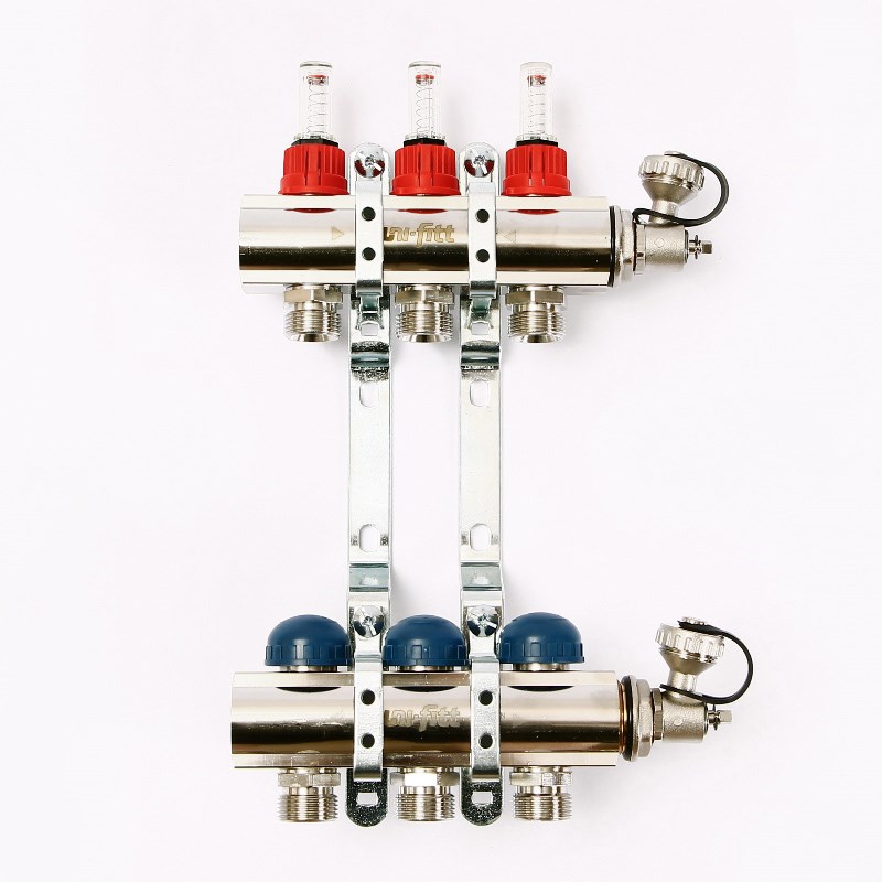 Колл.группа 1" х 3 вых 3/4" с расходомерами и термостатическими вентилями