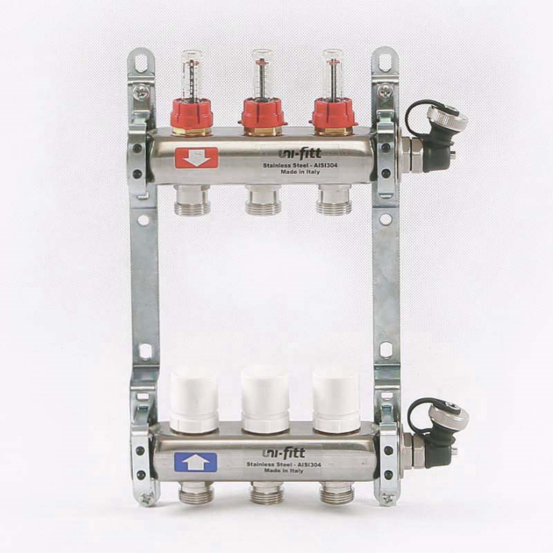 Колл.группа 1" х 3 вых 3/4" с расходомерами и термостатическими вентилями, нерж. сталь