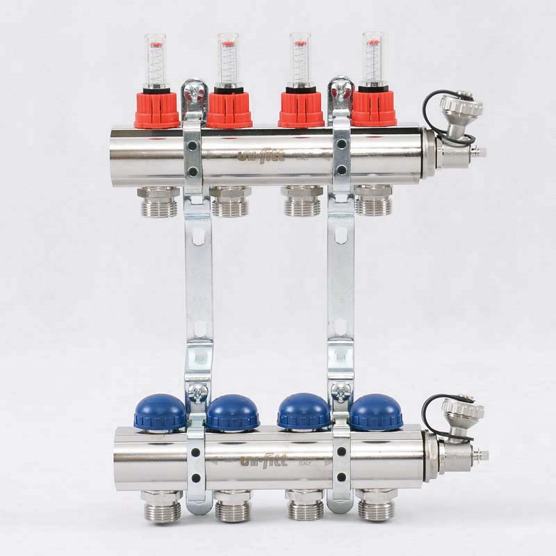 Колл.группа 1" х 6 вых 3/4" с расходомерами и термостатическими вентилями, нерж. сталь