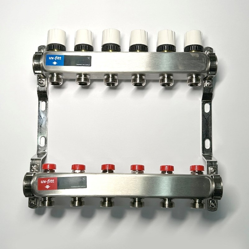 Колл.группа 1" х 6 вых 3/4" с балансировочными и термостатическими вентилями без конц, нерж. cталь