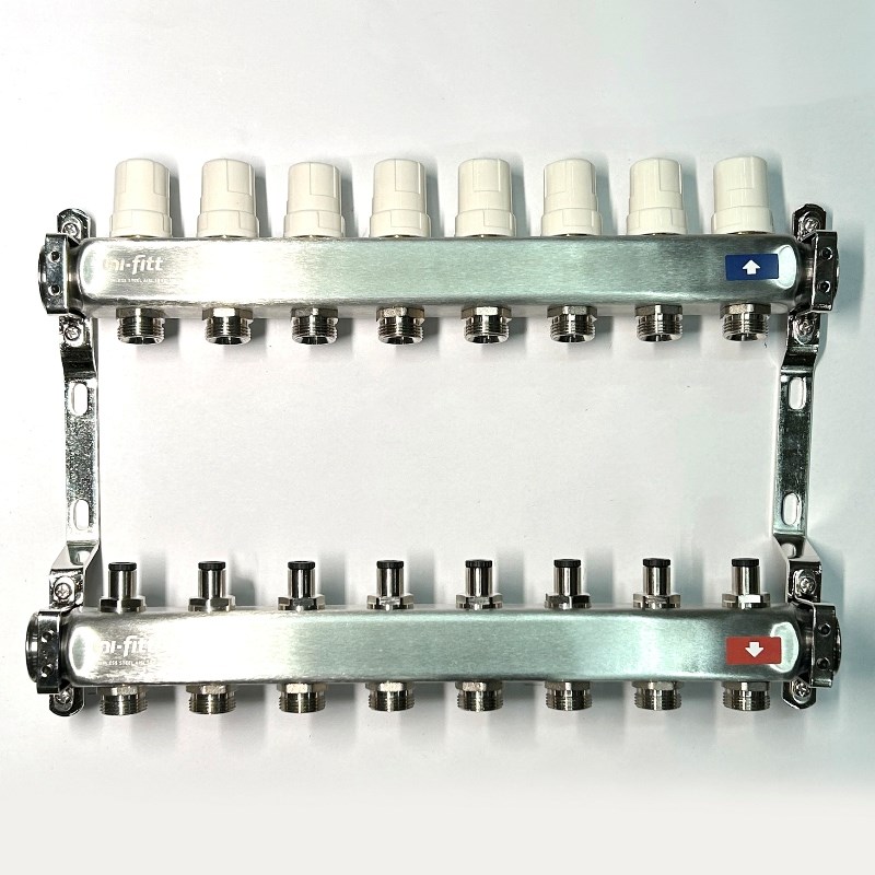 Колл.группа 1" х 8 вых 3/4" с балансировочными и термостатическими вентилями без конц, нерж. cталь