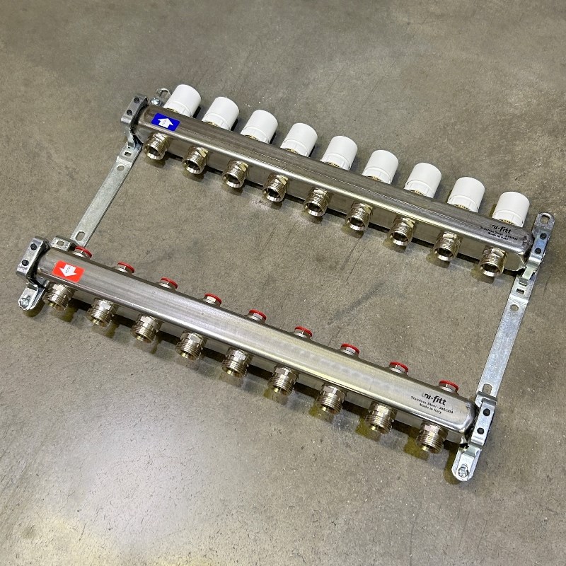 Колл.группа 1" х 9 вых 3/4" с балансировочными и термостатическими вентилями без конц, нерж. cталь