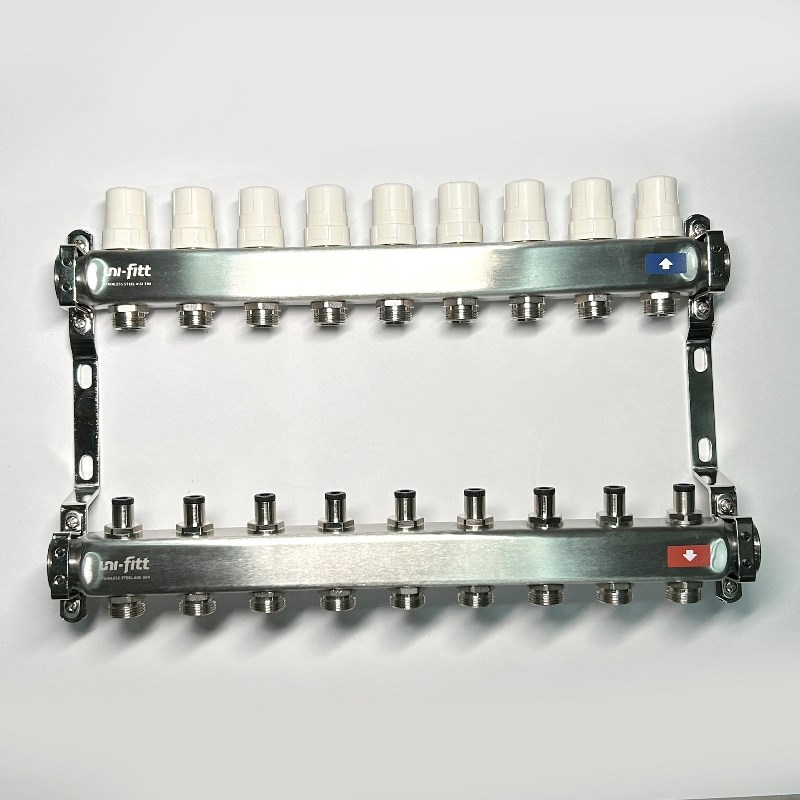 Колл.группа 1" х 9 вых 3/4" с балансировочными и термостатическими вентилями без конц, нерж. cталь