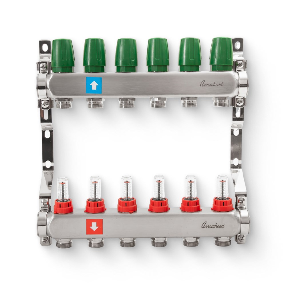 Колл.группа 1" х 11 вых 3/4" с расходомерами и термостатическими вентилями, нерж. сталь