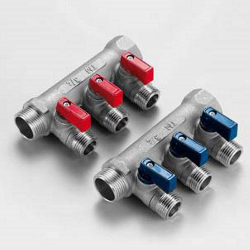 Коллектор НВ 3/4" х 4 вых 1/2" универсальный, с вентилями, никель