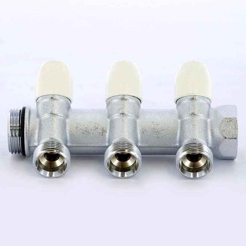 Коллектор НВ 1" х 3 вых 3/4" ЕК, с вентилями, никель