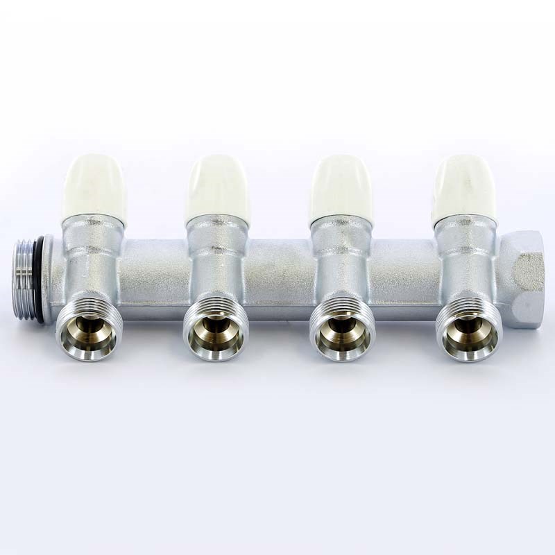 Коллектор НВ 3/4" х 4 вых 1/2" под соединитель, с кранами, никель