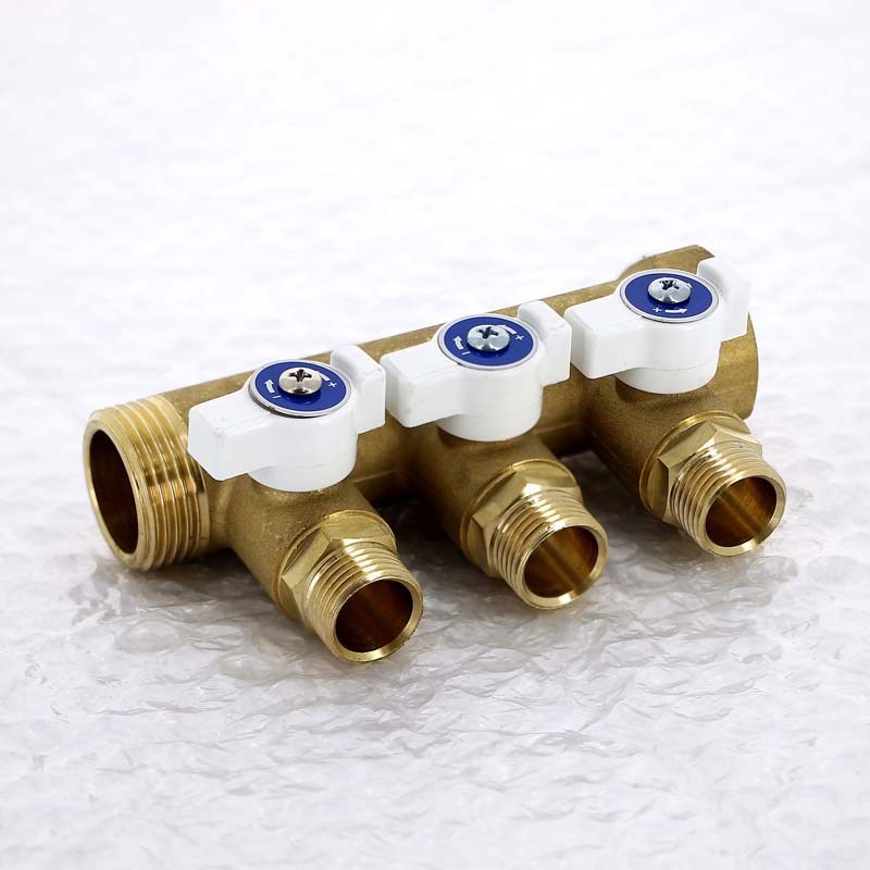 Коллектор НВ 1" х 3 вых 1/2" под соединитель, с кранами