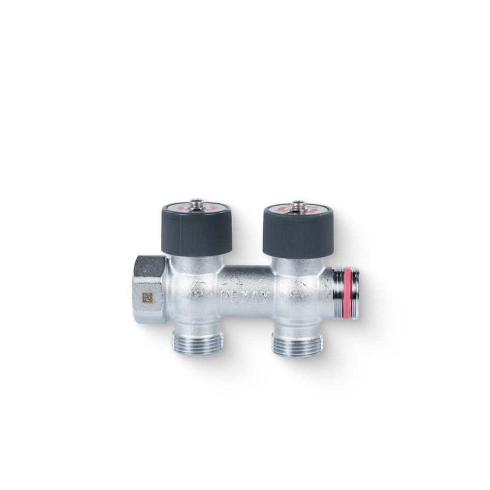 Коллектор с плавной регулировкой НВ 3/4" х 2 выхода 3/4" ЕК, хромированный