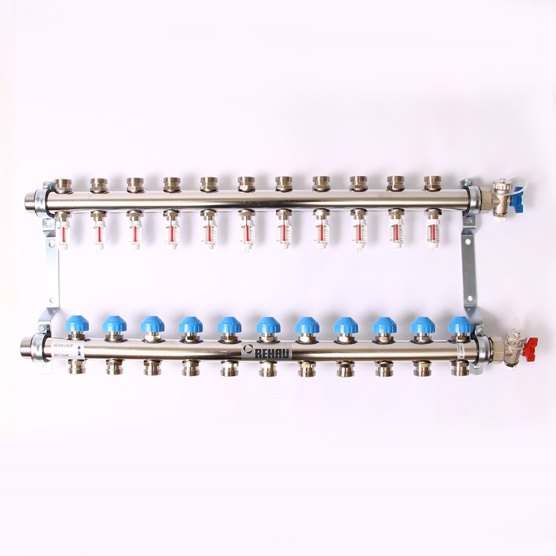 Коллекторная группа НН 1" x 11 вых 3/4"EK с расходом. и термост. вентилями, нерж.сталь, HKV-D