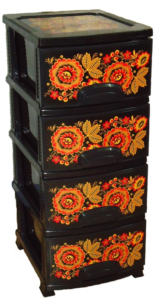 Комод ДЕКОР 4 ярус Хохлома черный В95*Ш38*Г47