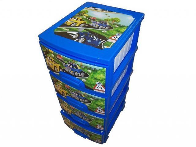 Комод ДЕКОР 4 ярус Машинки голубой В95*Ш38*Г47
