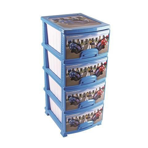 Комод ДЕКОР 4 ярус Мотокросс голубой В95*Ш38*Г47