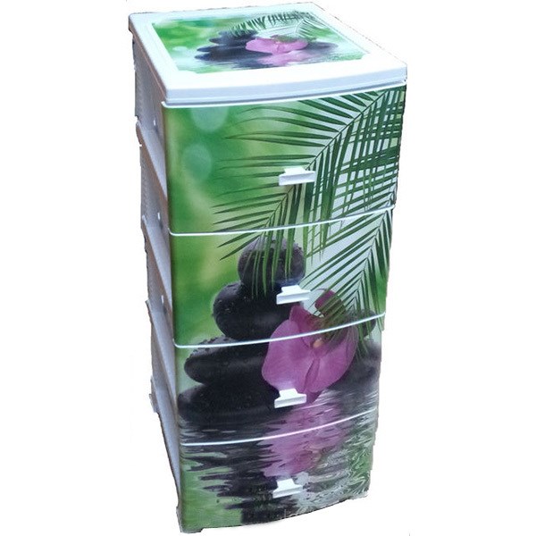 Комод ДЕКОР 4 ярус Орхидея МОНО рис. белый В95*Ш38*Г47