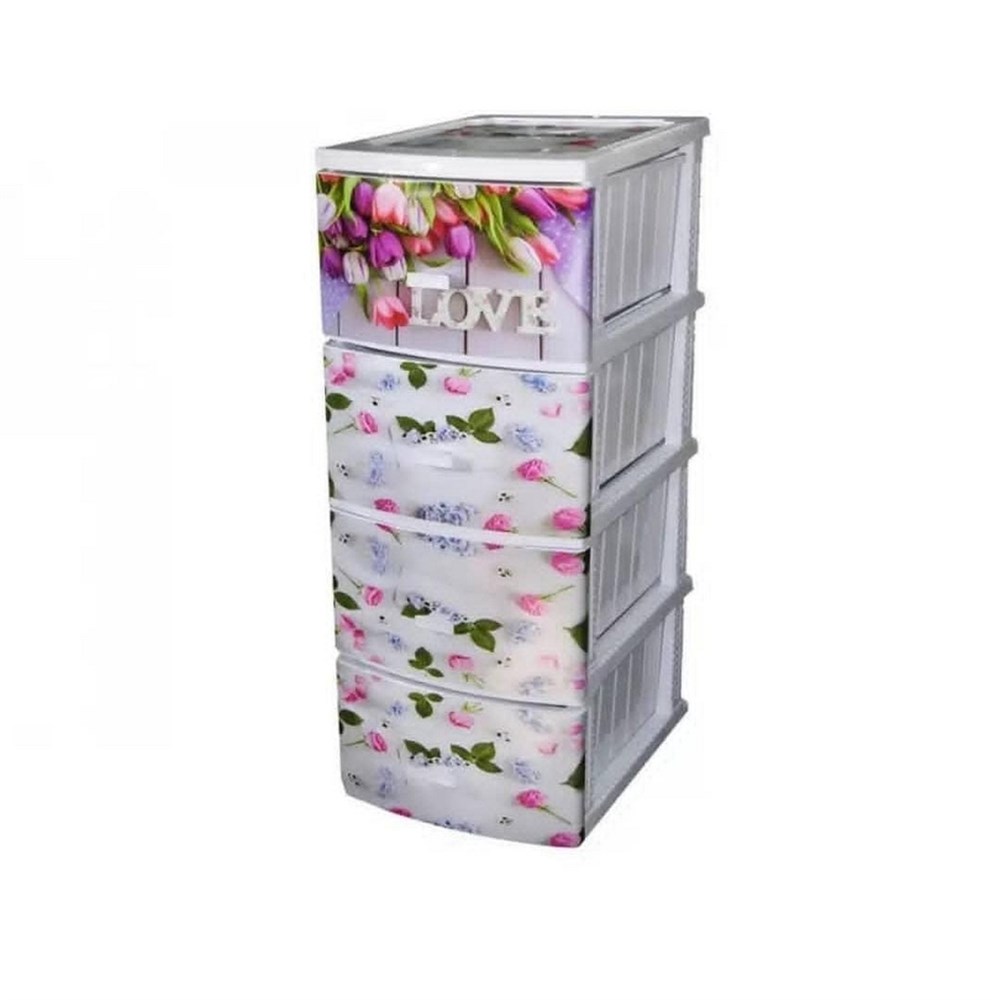 Комод из пищевого пластика с четырьмя выдвижными ящиками предназначен для хранения вещей и продуктов питания. Он гармонично впишется в интерьер любой комнаты. Легкий и вместительный комод поможет обеспечить порядок в доме. Рисунок на передних панелях придаст индивидуальность и подарит настроение.