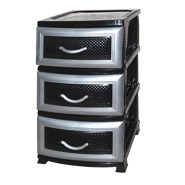 Комод ДЕЛЬФИН 3 яр. черный/серебро В75*Ш38*Г47