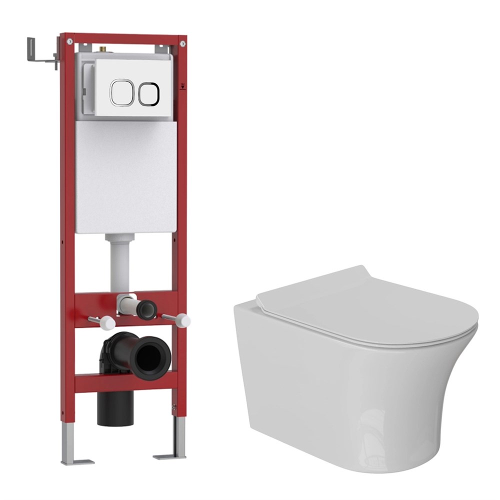 Полностью готовый для установки комплект WAVE состоит из системы инсталляции, двухрежимной кнопки с механической системой запуска смыва, безободкового унитаза "STAR". В комплектацию входит все необходимое для установки: крепления, патрубки, звукоизолирующая пластина.