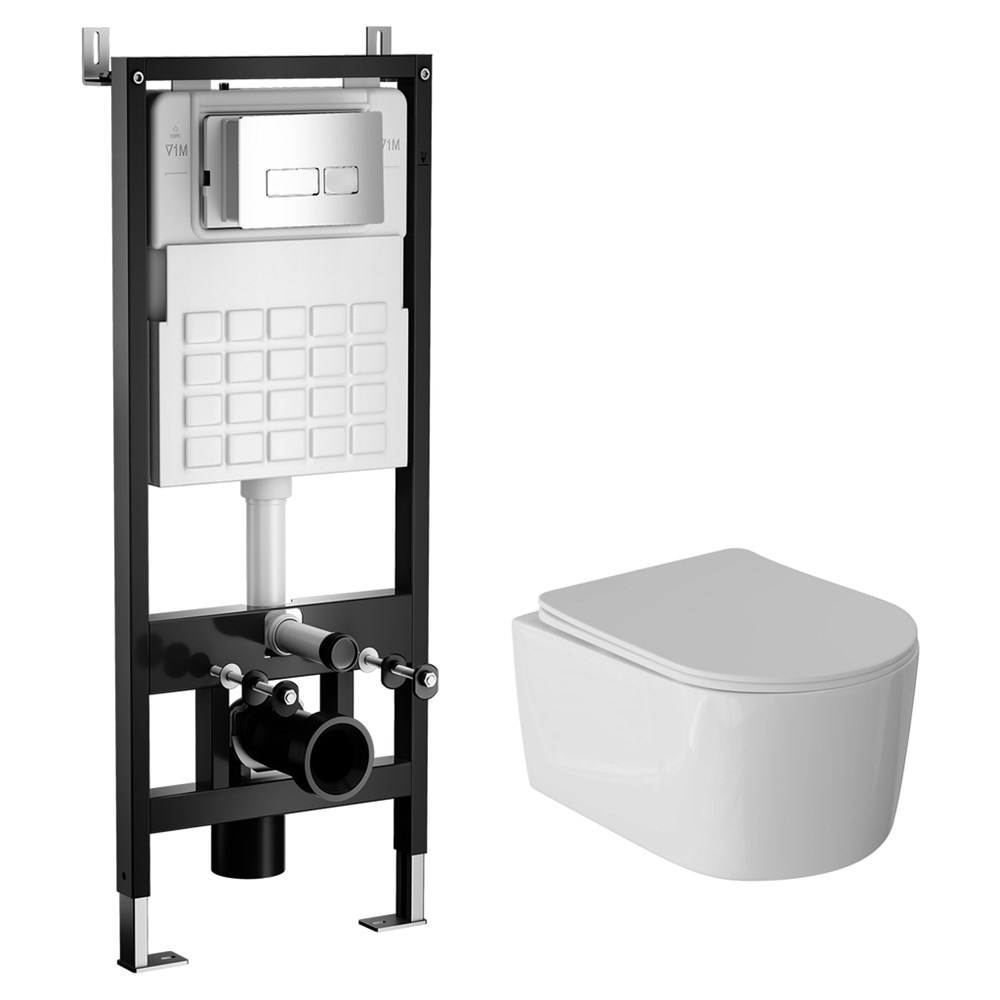 Комплект WAVE "Система инсталляции МЕХАНИКА 500+унитаз "SOLO"+прямоугольная кнопка V3 хром"