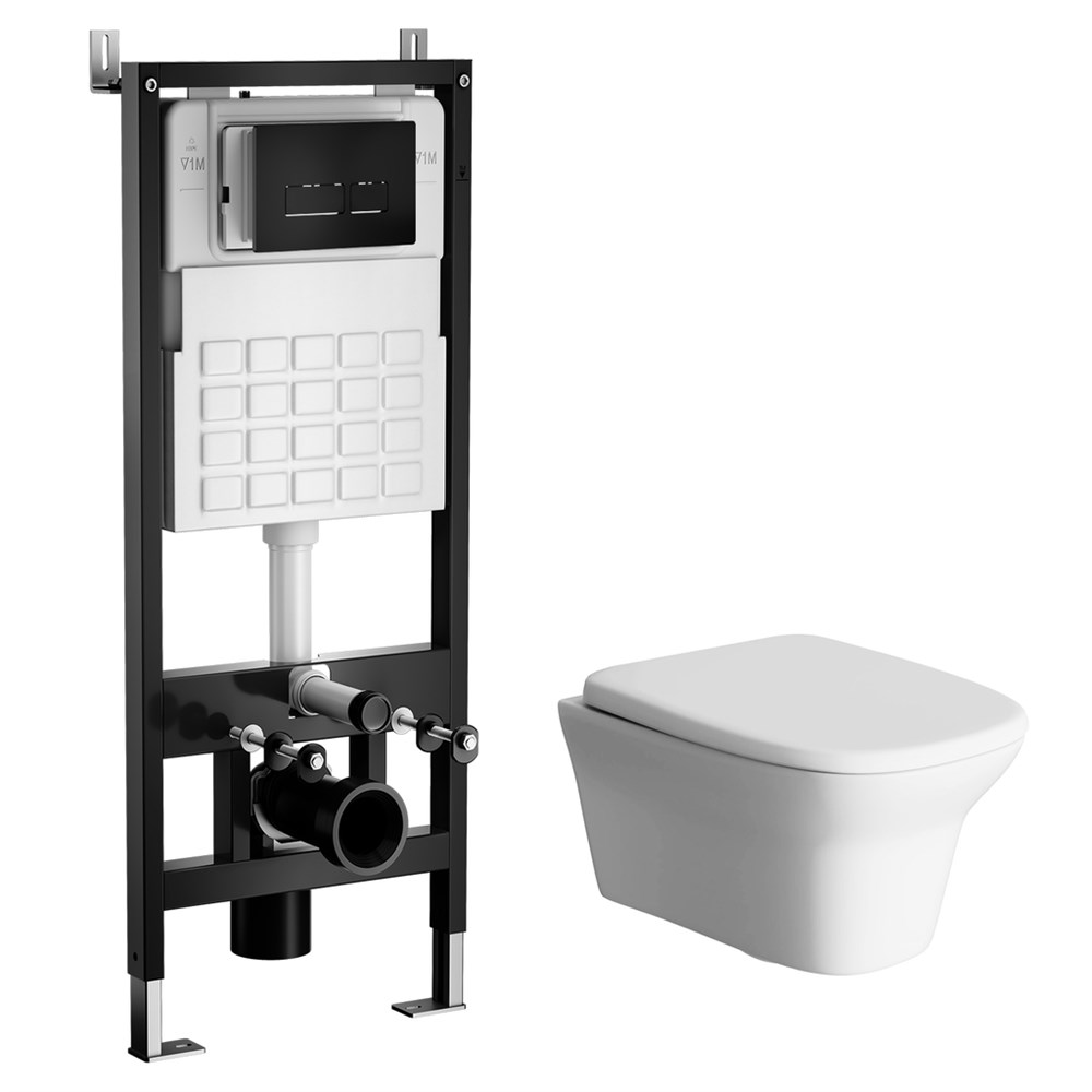 Комплект WAVE "Система инсталляции МЕХАНИКА 500+унитаз "STONE"+прямоугольная кнопка V2 черная"