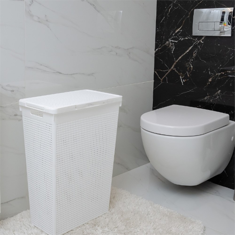 Корзина д/белья "Лофт" узкая с крышкой 50л белая