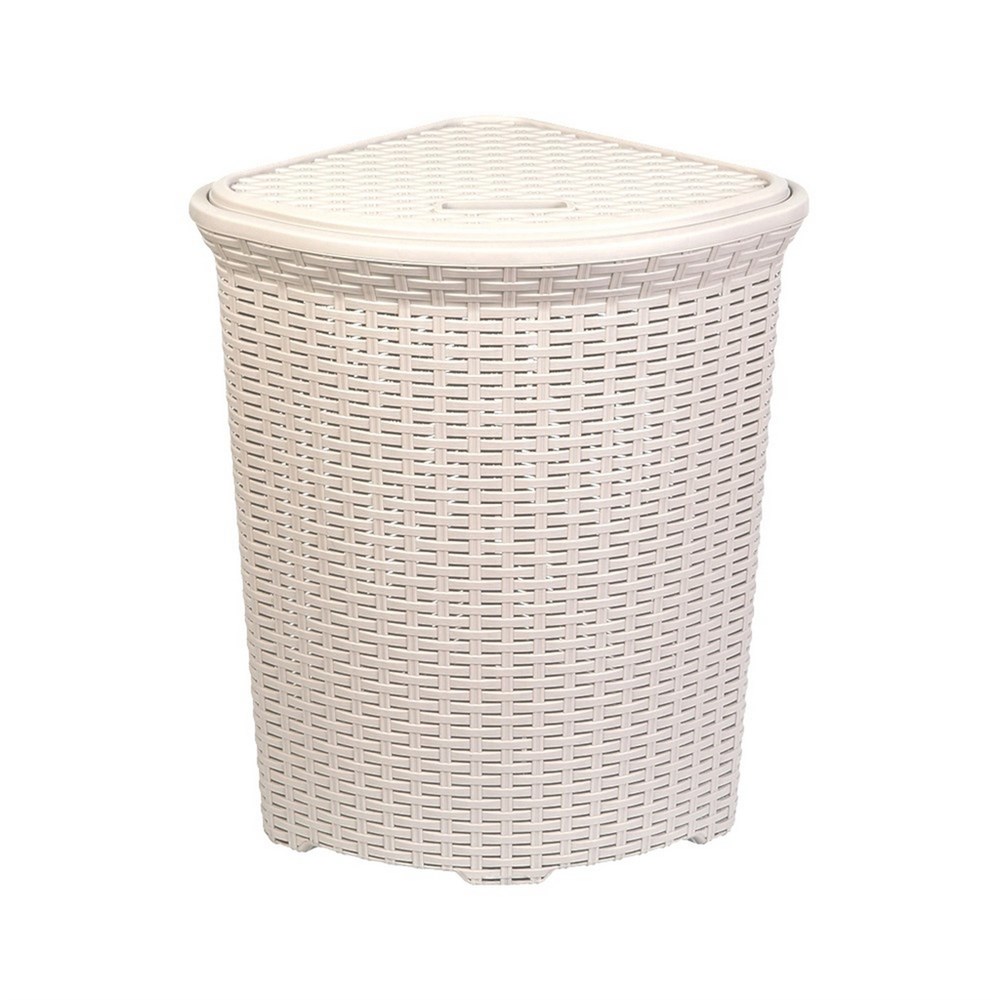 Корзина д/белья с крышкой УГЛОВАЯ 60л РОТАНГ слоновая кость
