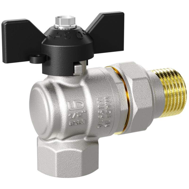 Кран НВ 1/2" угловой с разъемным соединением Pride, стандартный проход, бабочка